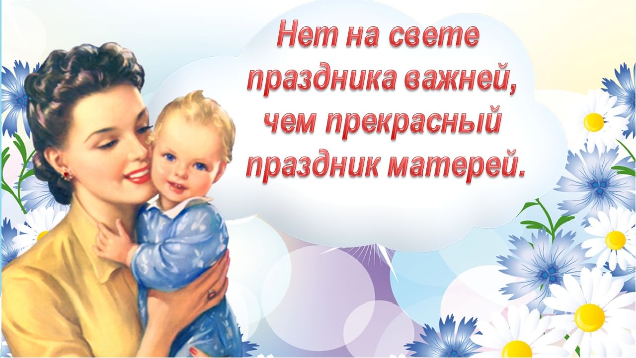 В информационной справке говорится об учреждении в России праздника – Дня матери, который был введён 30 января 1998 года. С такой инициативой выступил Комитет Государственной Думы РФ по делам женщин, семьи и молодежи. С тех пор российские мамы получили свой официальный праздник, ведь материнская миссия — самая высокая миссия на земле. «Мама» — главное слово для каждого из нас, как и человек, который за ним стоит. От матери мы полностью зависим, будучи детьми, и к ней за советами приходим, когда вырастаем и, наконец, понимаем: мама была права. Связь между матерью и ребенком нерушима и непоколебима, как сила любви, которая их объединяет.